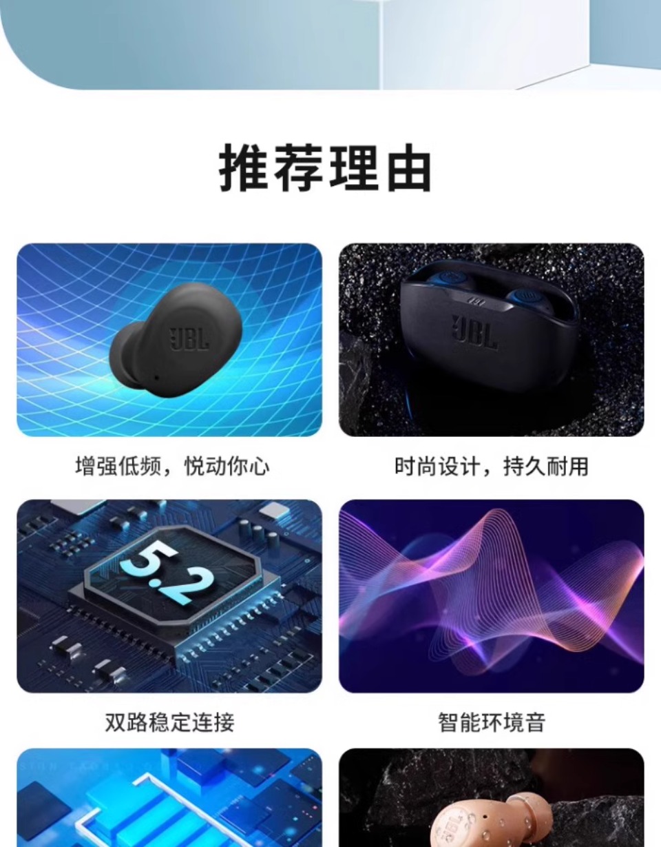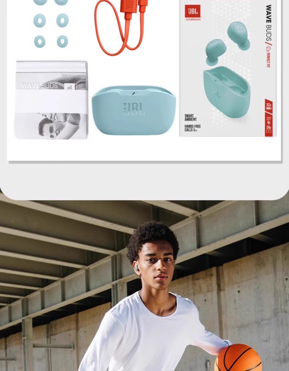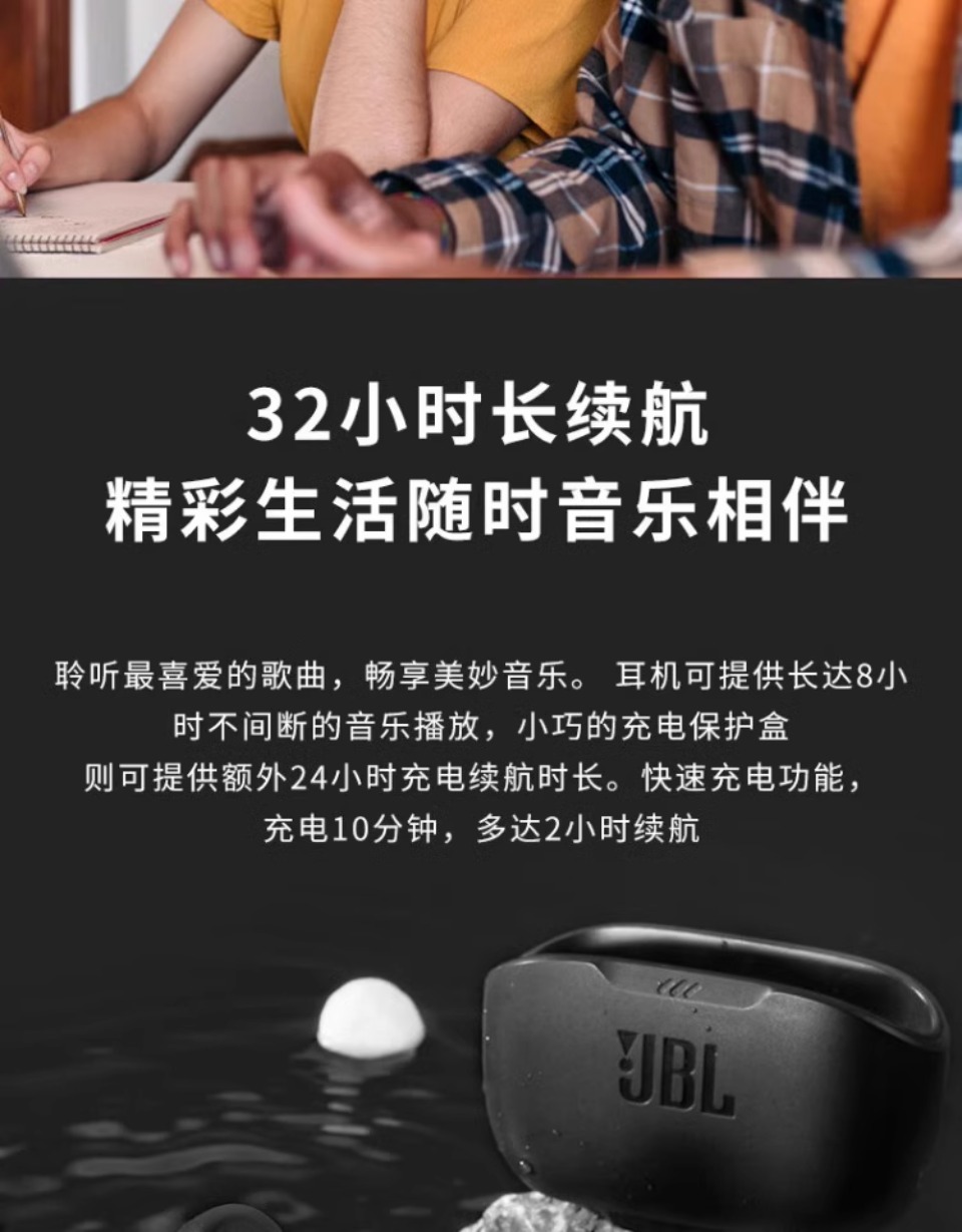 JBL WAVE BUDS 真无线快充蓝牙防水耳机 白