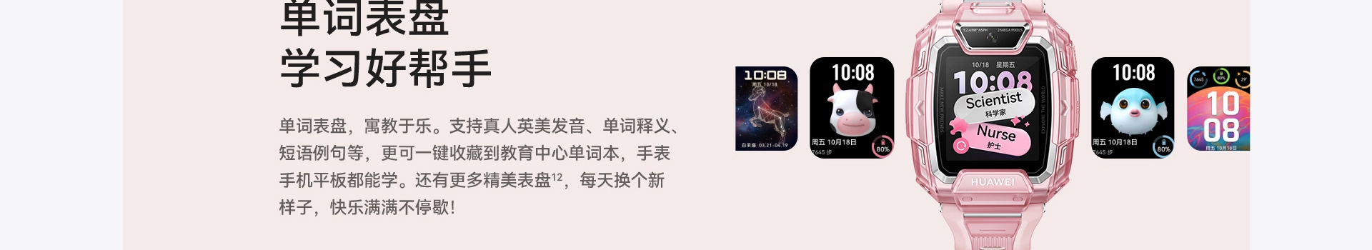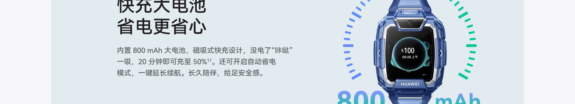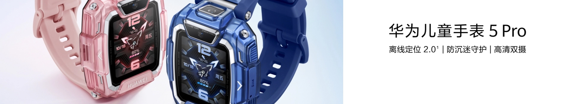 华为儿童手表 5 Pro TGR-L10 (蓝色硅胶表带) 冰晶蓝