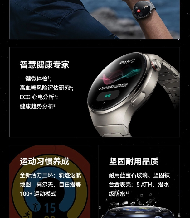 华为智能穿戴 WATCH 4 Pro MDS-AL00(蓝色复合表带).无色