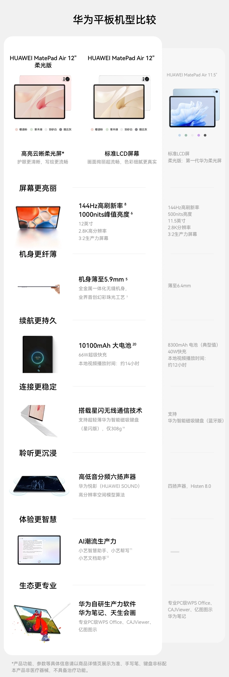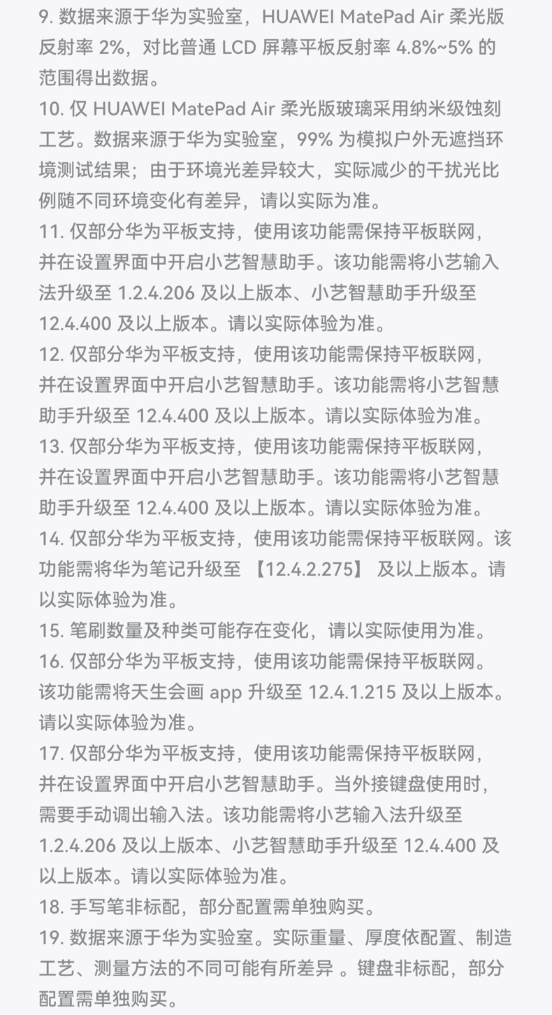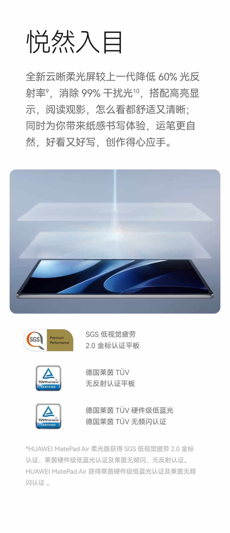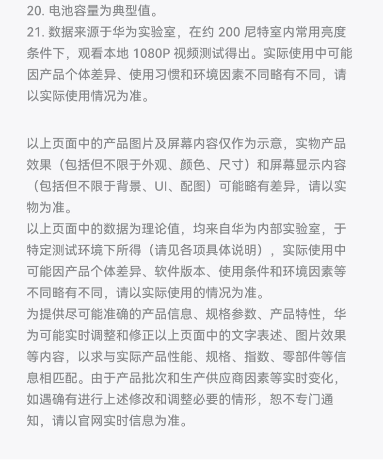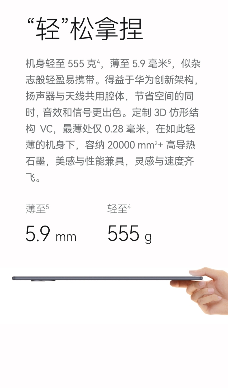 3.测试数据来源于华为实验室,受产品配置和制造工艺、测量方法的影响,实际重量和厚度或有差异,请以实物为准。