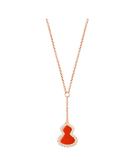 Qeelin Petite Wulu 18K玫瑰金钻石及红玛瑙项链
