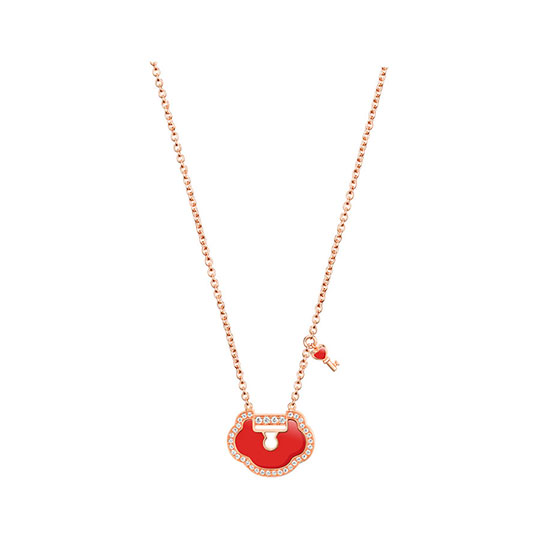 Qeelin Yu Yi Lock 18K玫瑰金钻石及红玛瑙项链