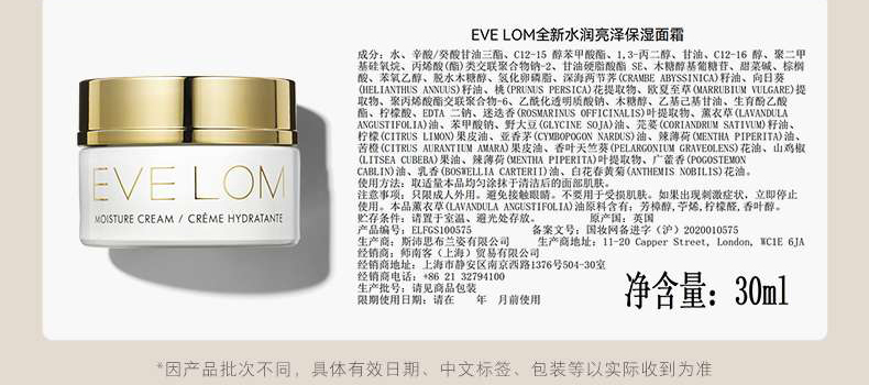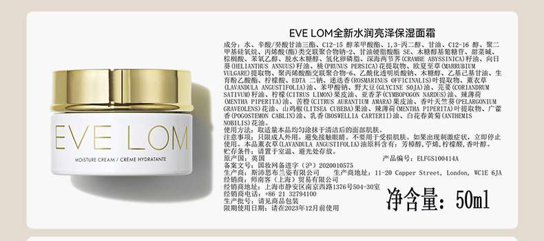 EVE LOM 全新水润亮泽保湿面霜 50ml