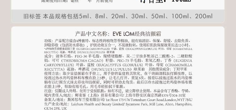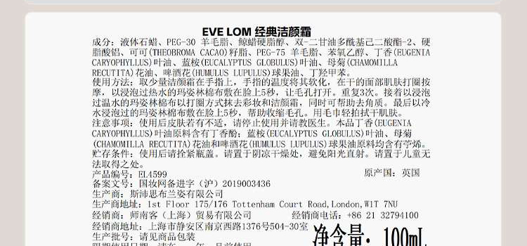 EVE LOM 经典洁颜霜200ml