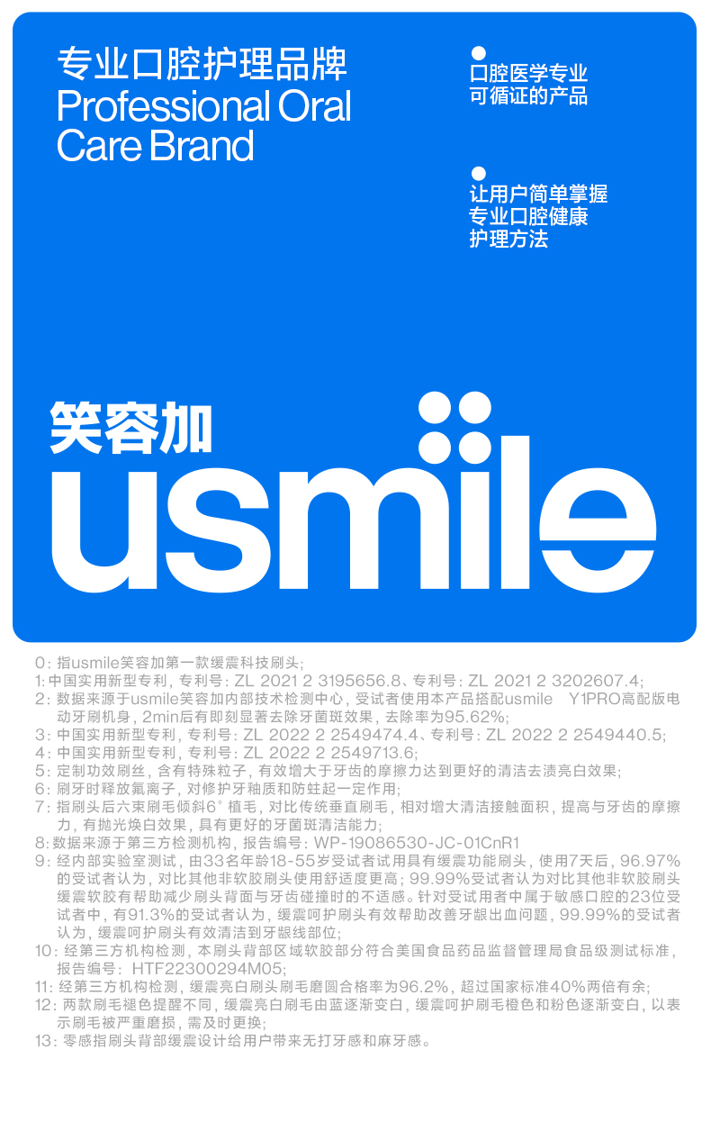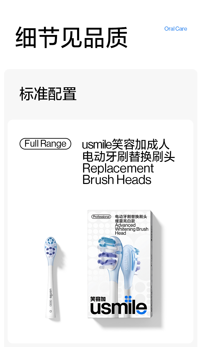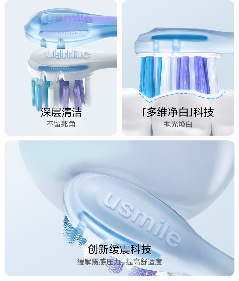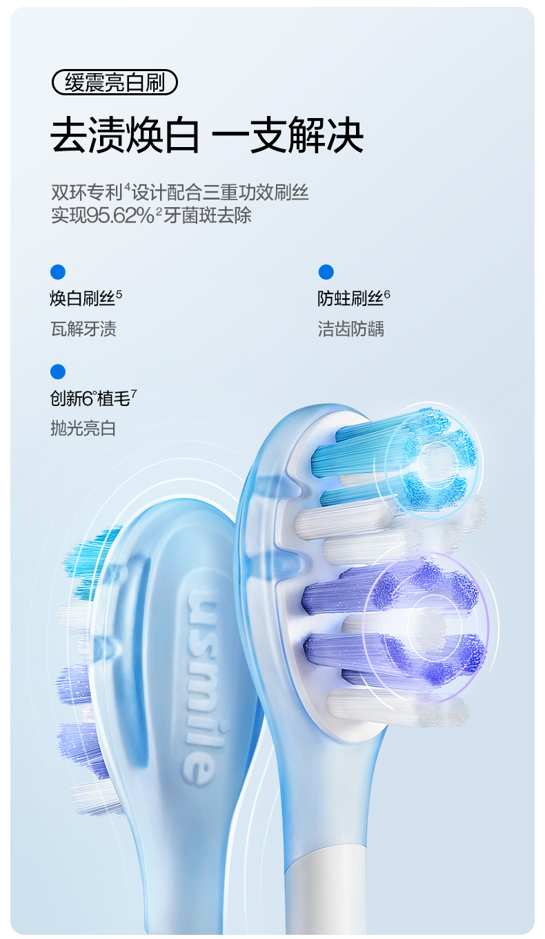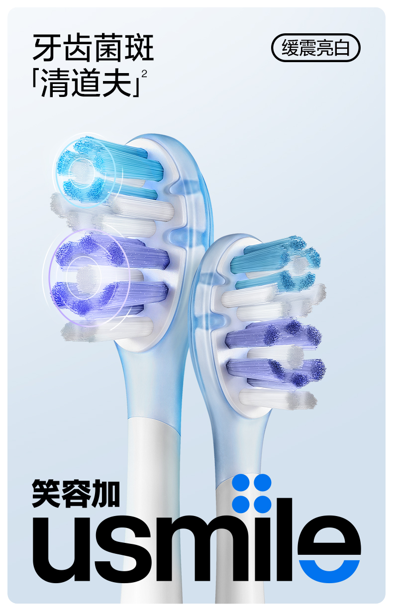 usmile 缓震亮白刷头2支装 (白色)
