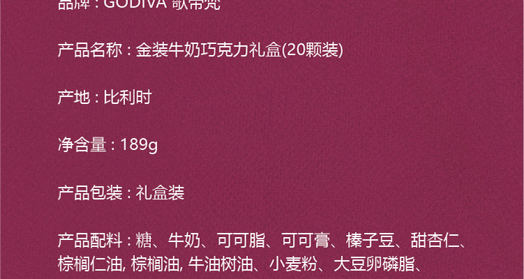 歌帝梵金装牛奶巧克力礼盒(20颗装)