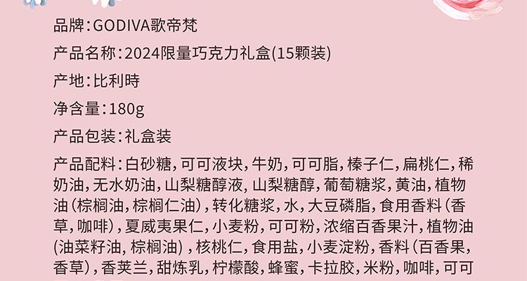 歌帝梵2024限量巧克力礼盒(15颗装)180g