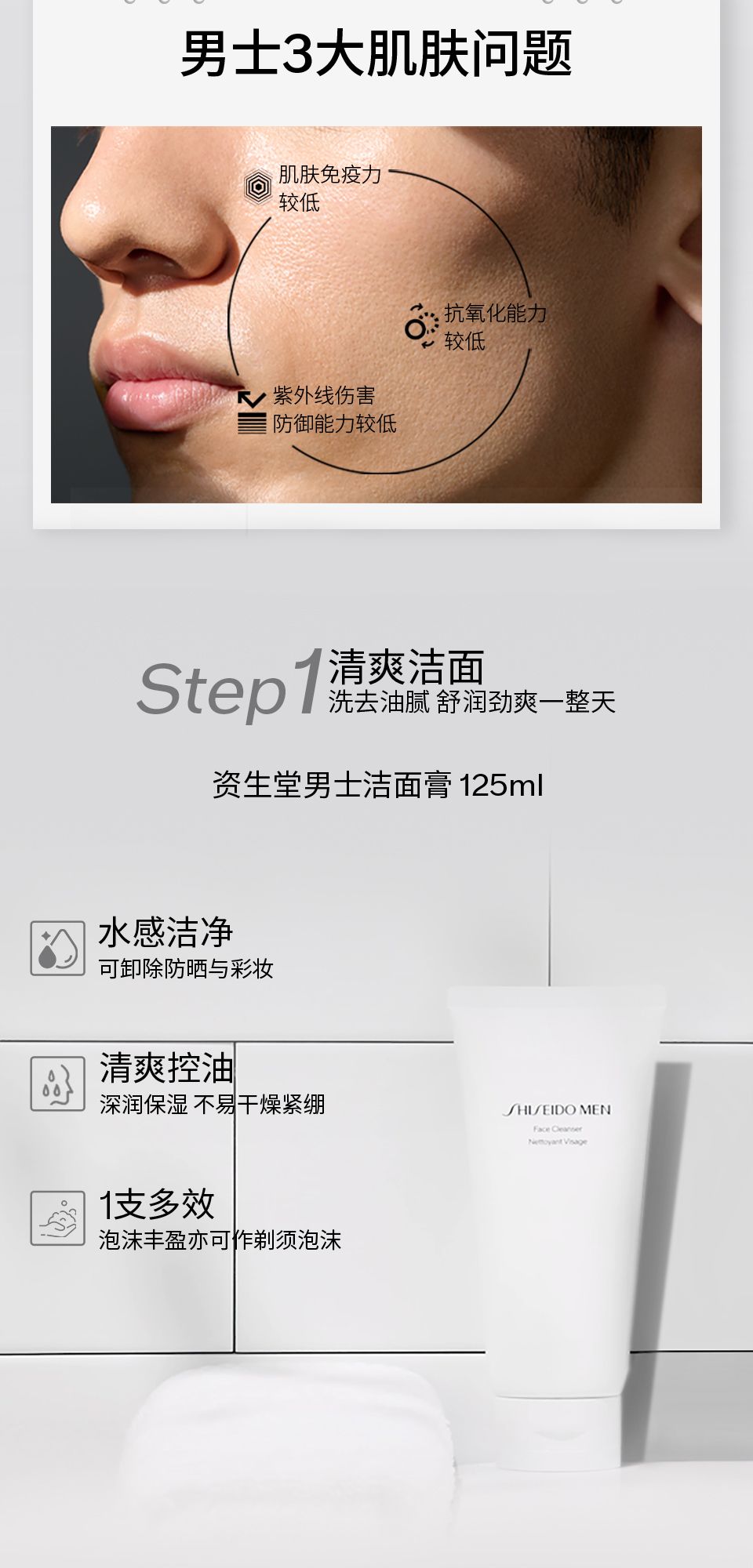资生堂男士洁面爽肤两部曲