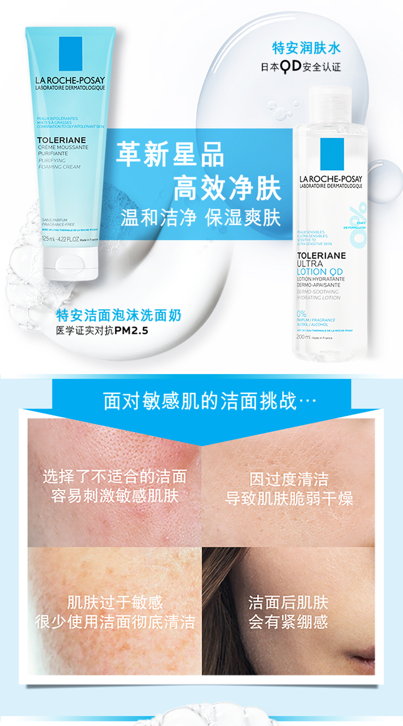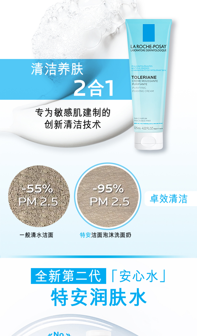 理肤泉特安洁面泡沫 深层清洁温和保湿敏感肌