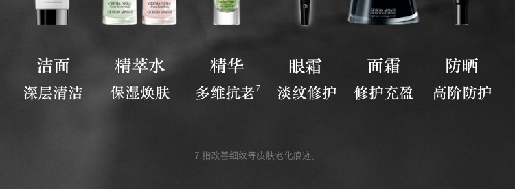 从时装,到彩妆,品牌皆遵循同一哲学理念:阿玛尼以优美简约的高品质作品缔造优雅风范,舒适惬意方能体现优雅。阿玛尼作品能够展现您的自我风采与浑然天成的优雅风度,阿玛尼香水让您独树一帜,阿玛尼彩妆为您彰显个性,阿玛尼护肤产品令您更臻完美。