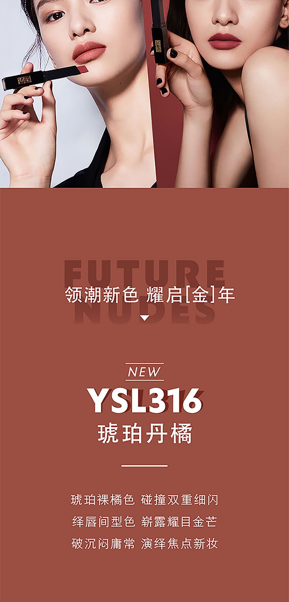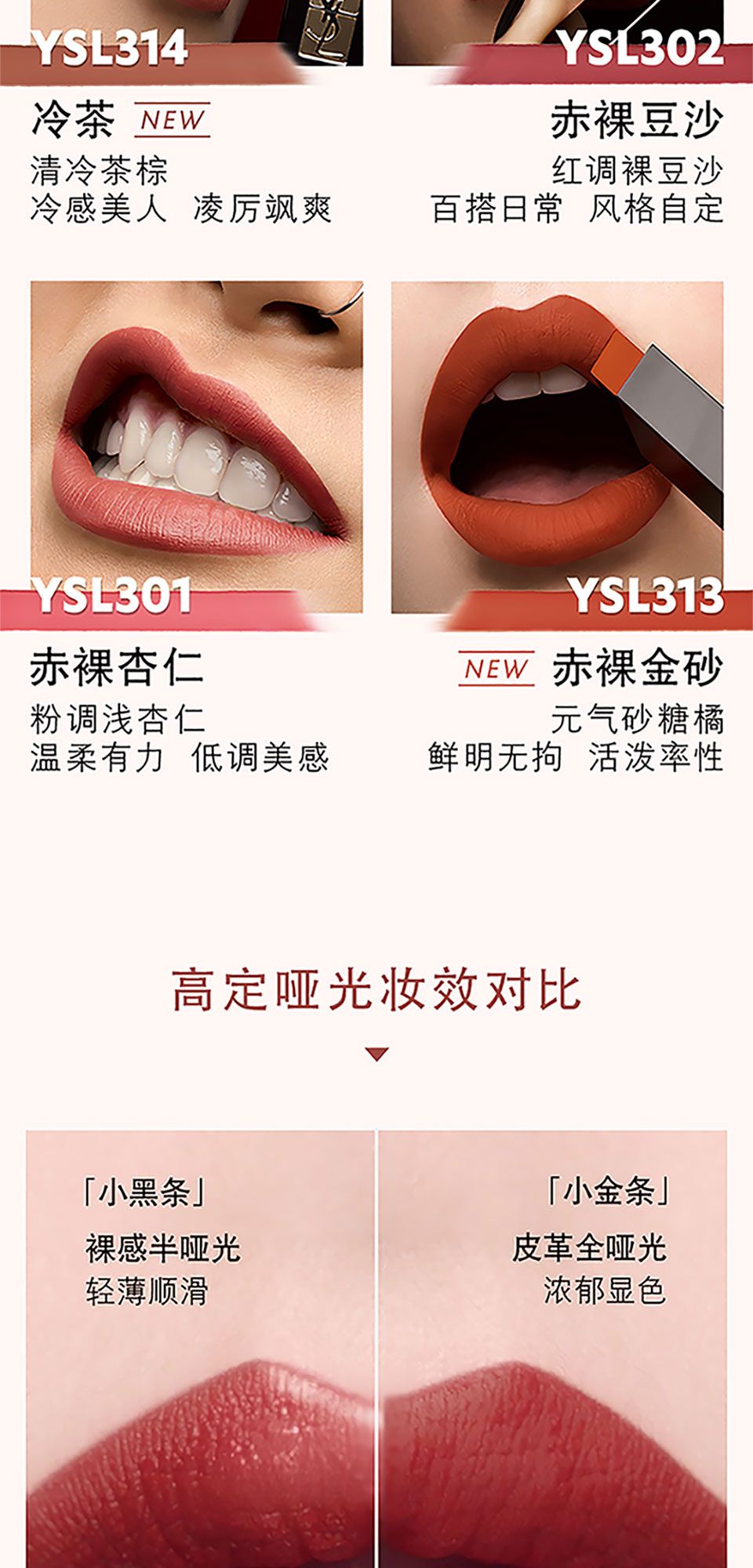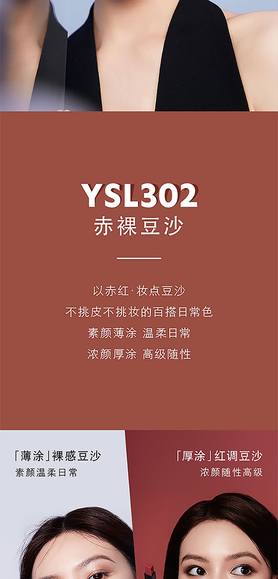 YSL圣罗兰细管丝绒纯口红 小黑条 302 赤裸豆沙