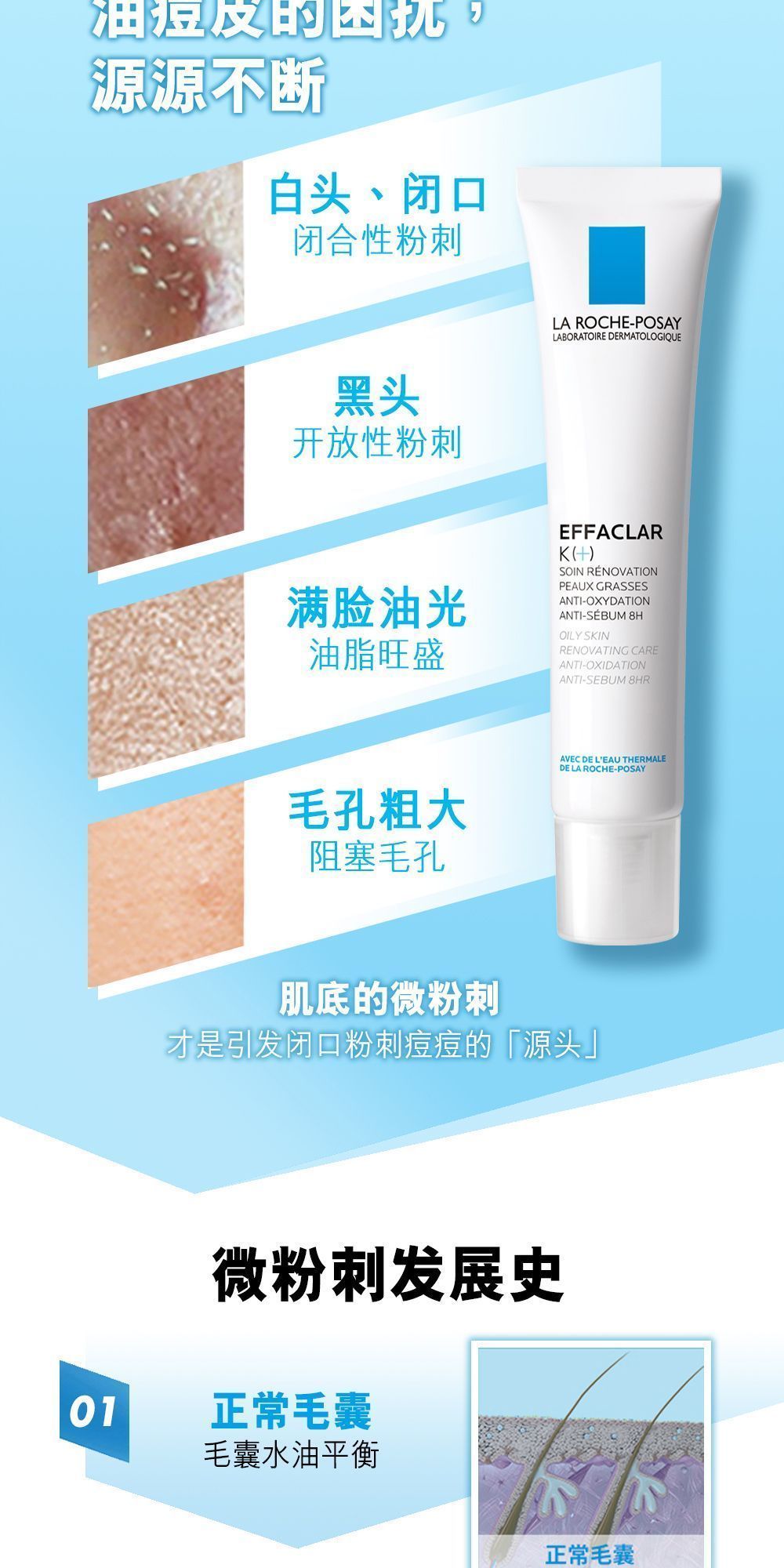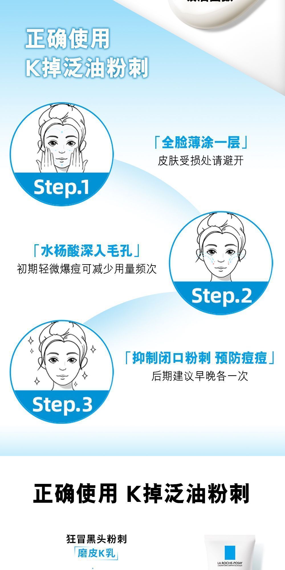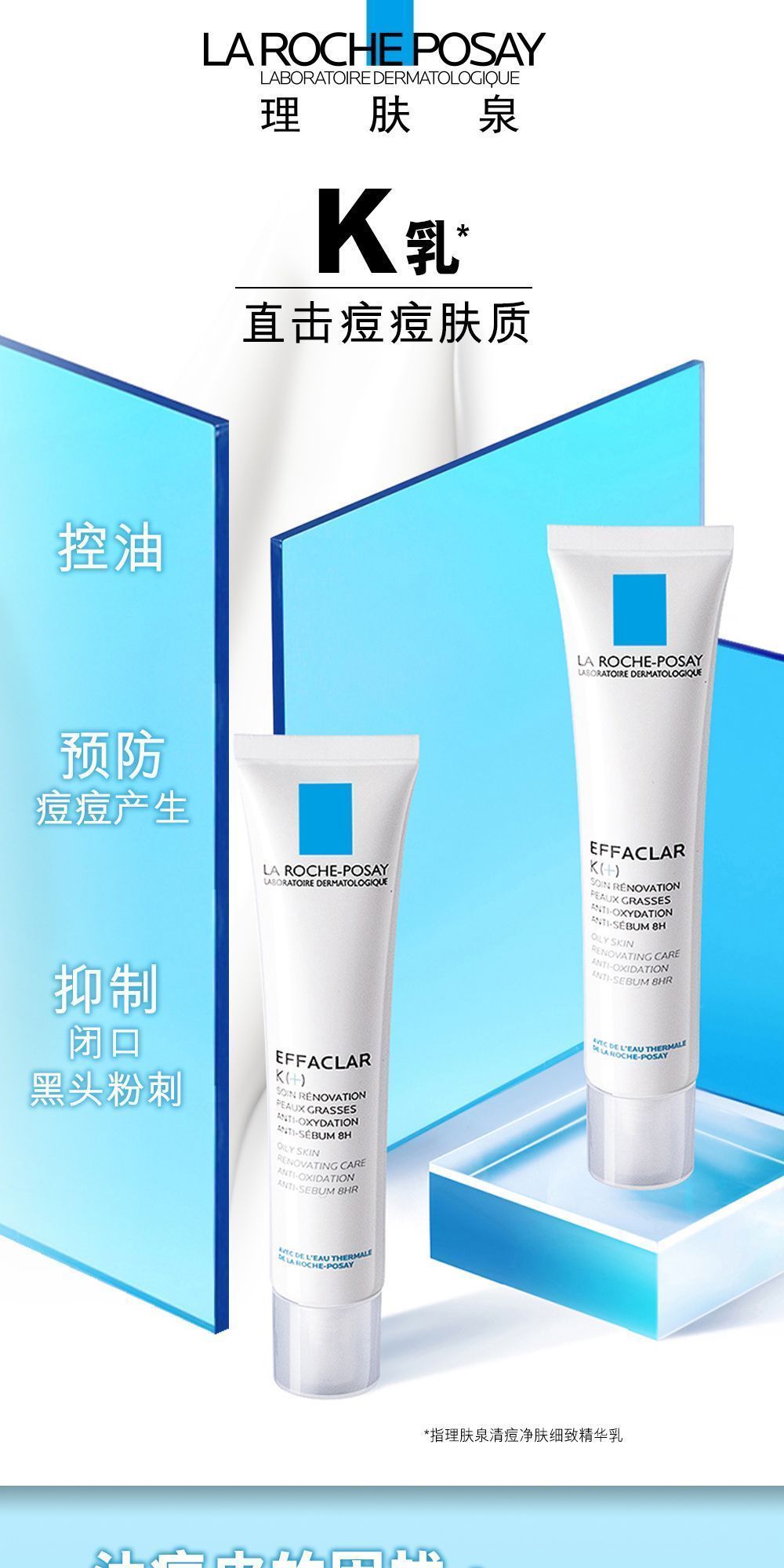 理肤泉清痘精华k乳 控油去闭口粉刺黑头缩毛孔水杨酸