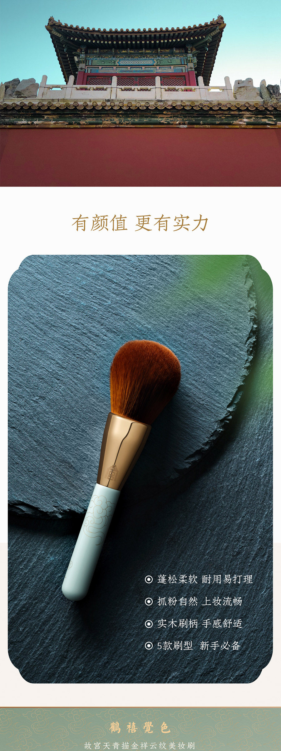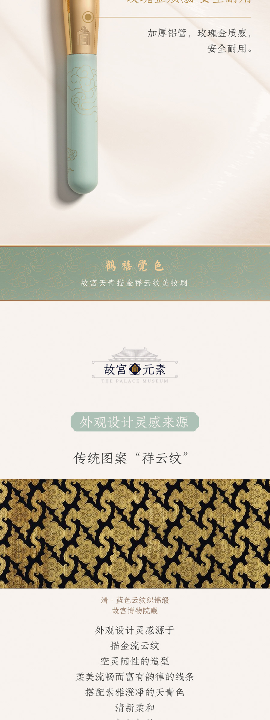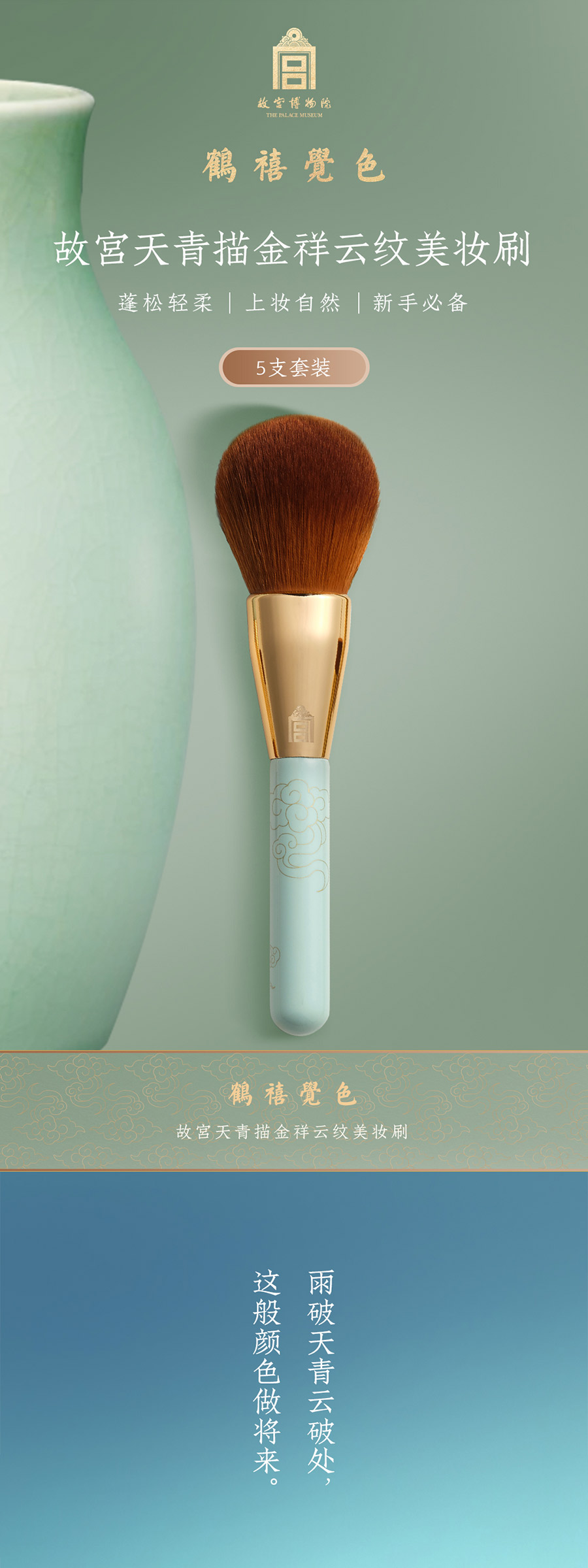 鹤禧觉色 故宫天青描金祥云纹美妆刷