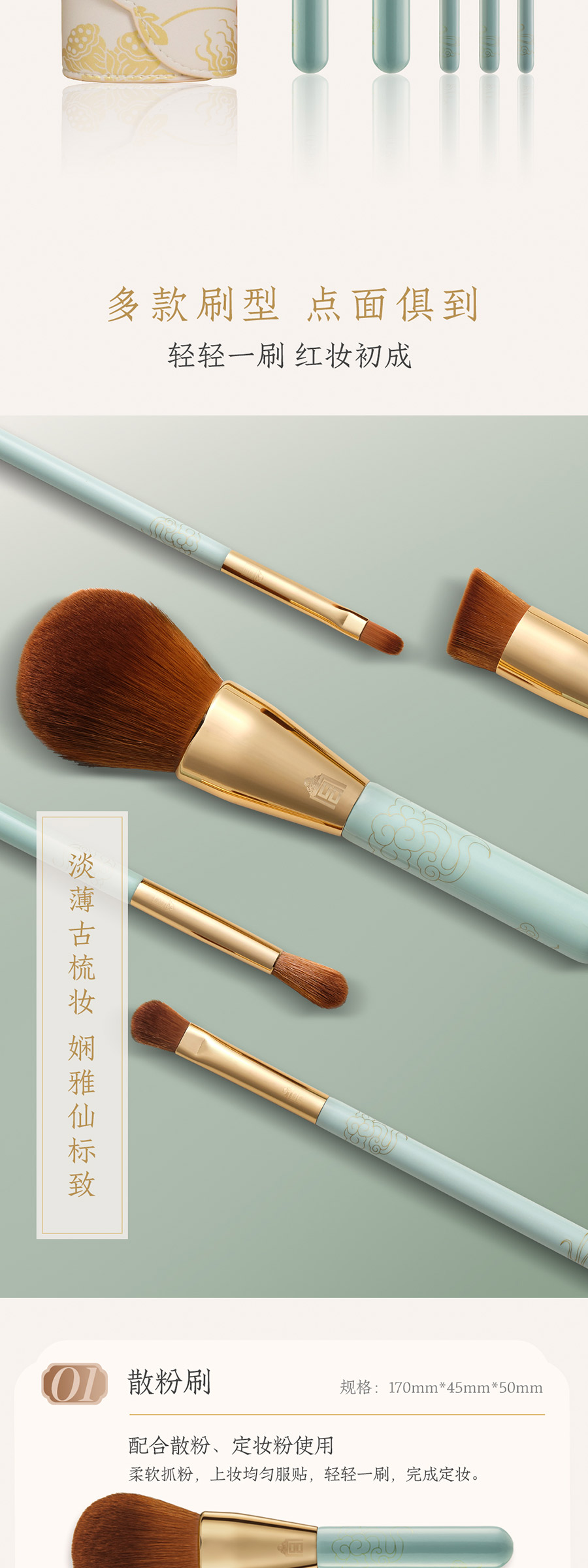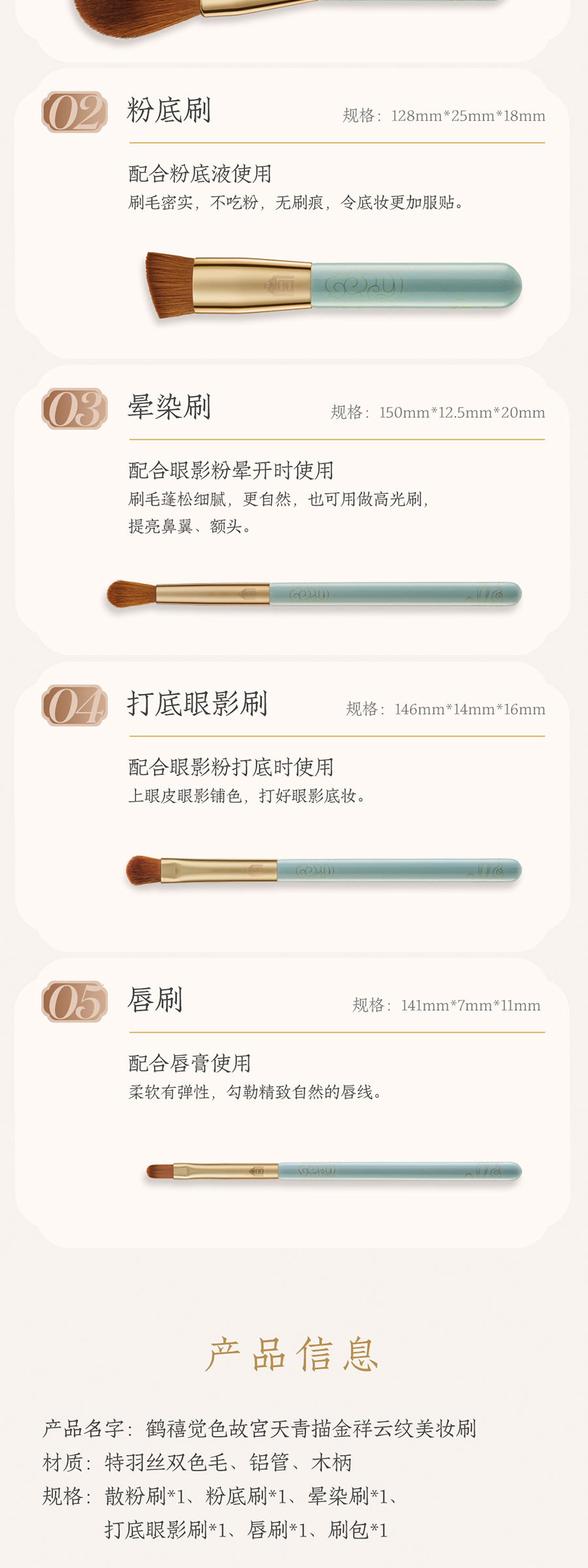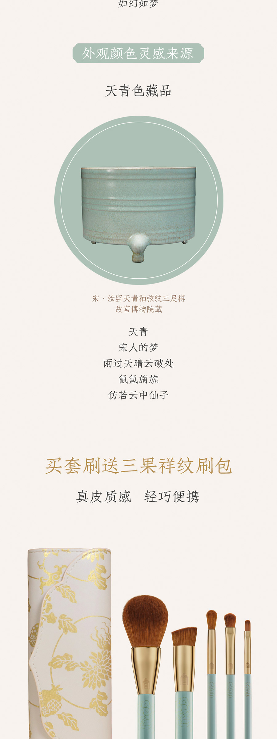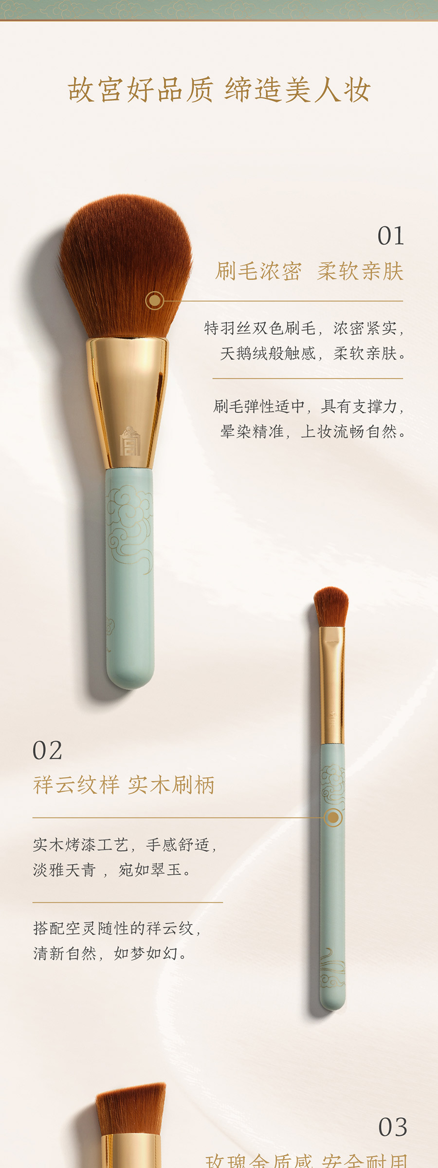 鹤禧觉色 故宫天青描金祥云纹美妆刷