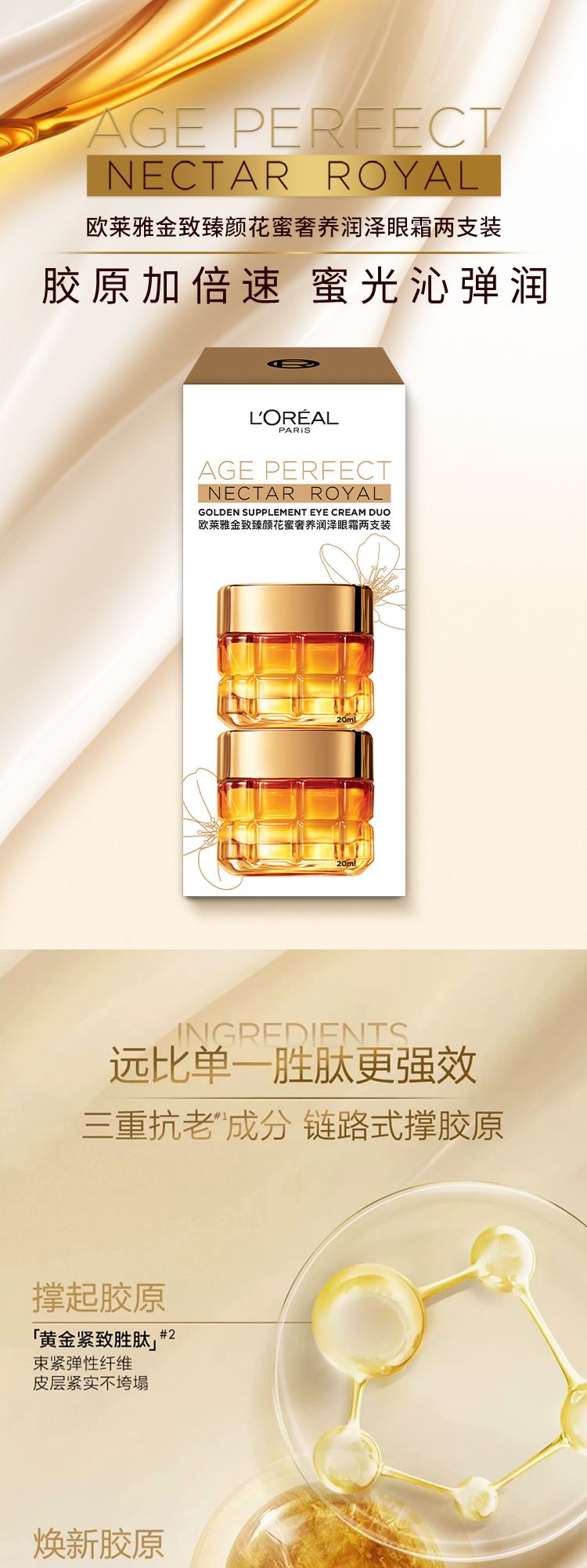 欧莱雅金致臻颜花蜜奢养润泽眼霜两支装