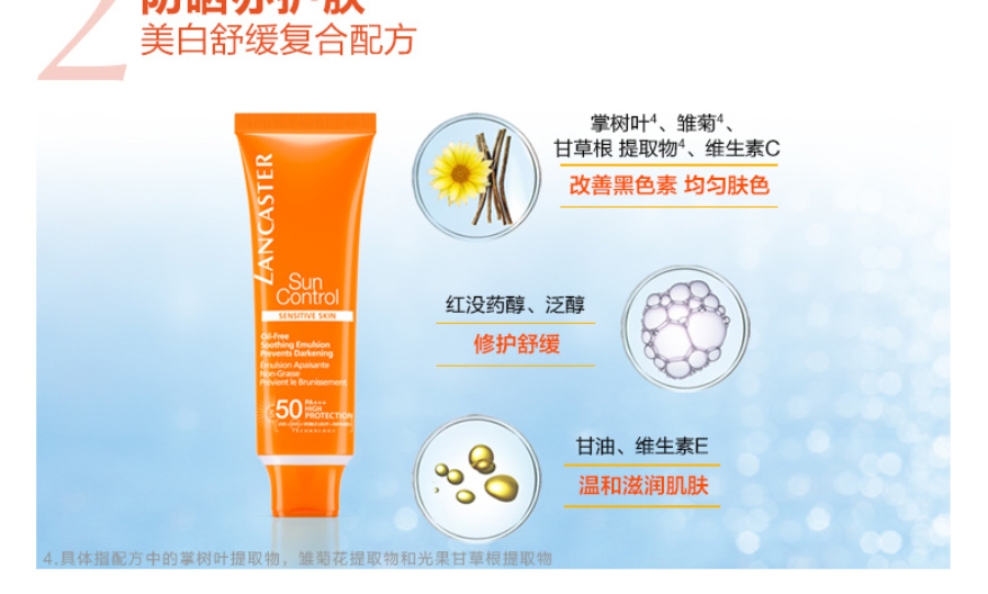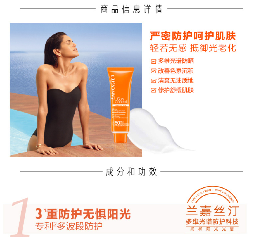 兰嘉丝汀悦阳舒爽倍护娇容防晒乳液 SPF50+ PA+++50ml脸部防晒