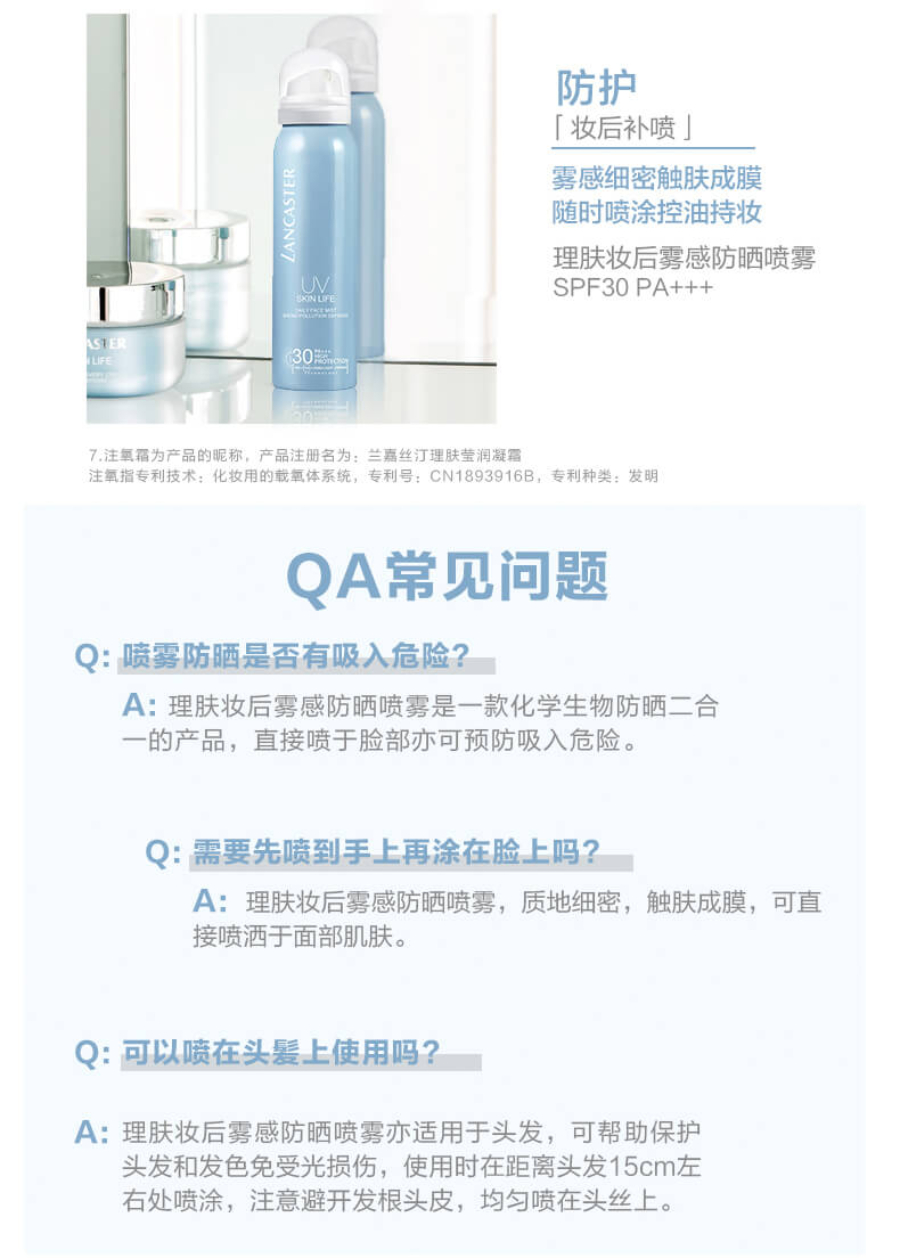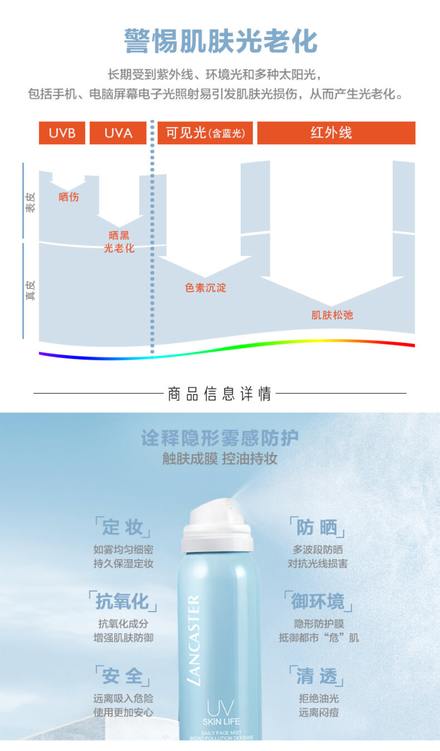 兰嘉丝汀理肤妆后雾感防晒喷雾SPF30 PA+++100ml防晒