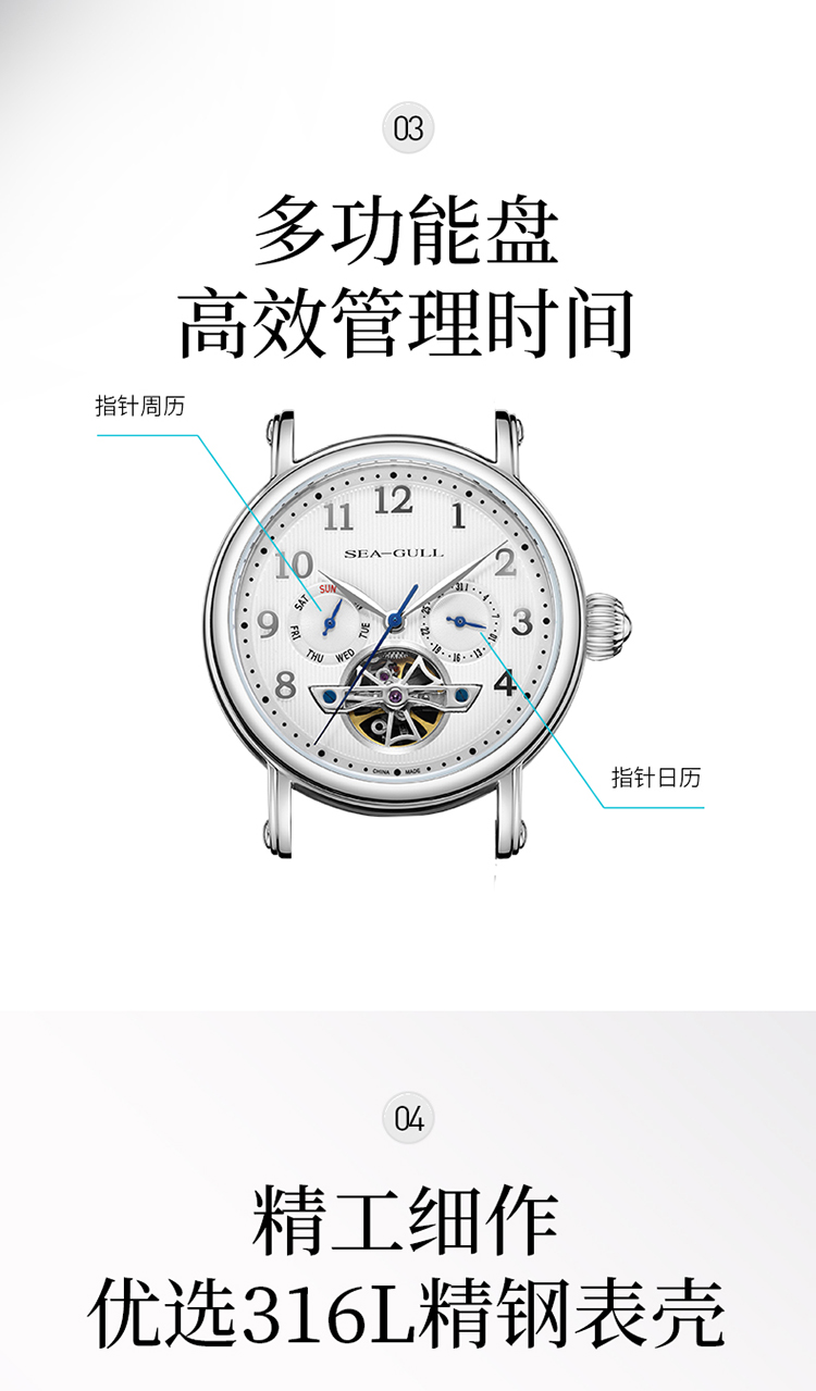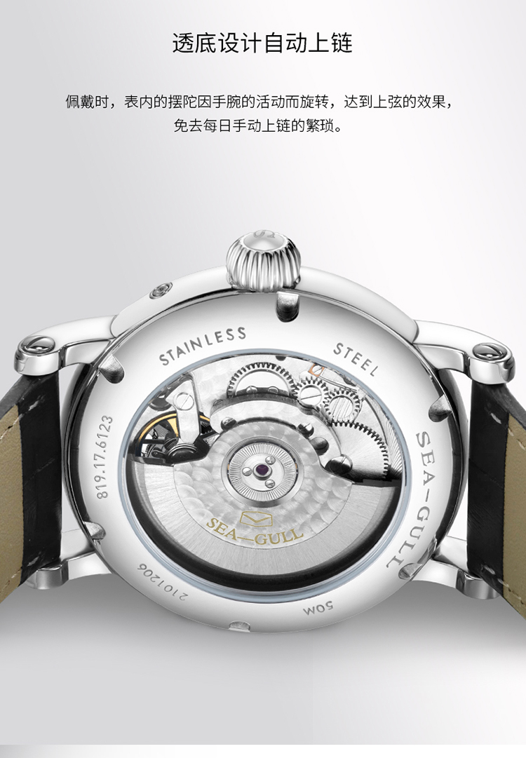 SEA-GULL 海鸥表卓越系列精钢自动表819176123