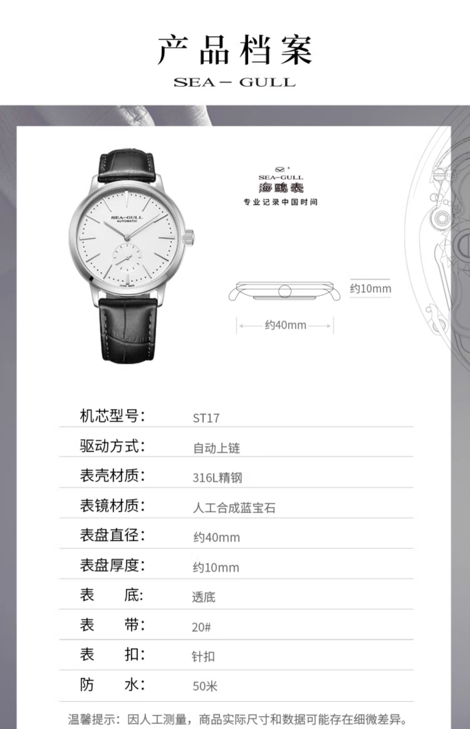 SEA-GULL 海鸥表卓越系列精钢自动表819126075