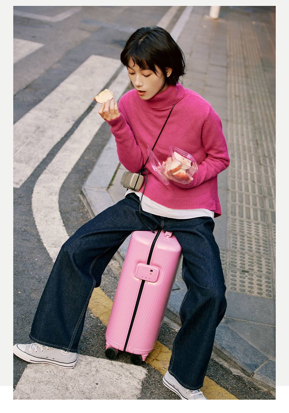 ITO PISTACHIO 2 STRIPED系列 亮面数字紫28英寸拉杆箱